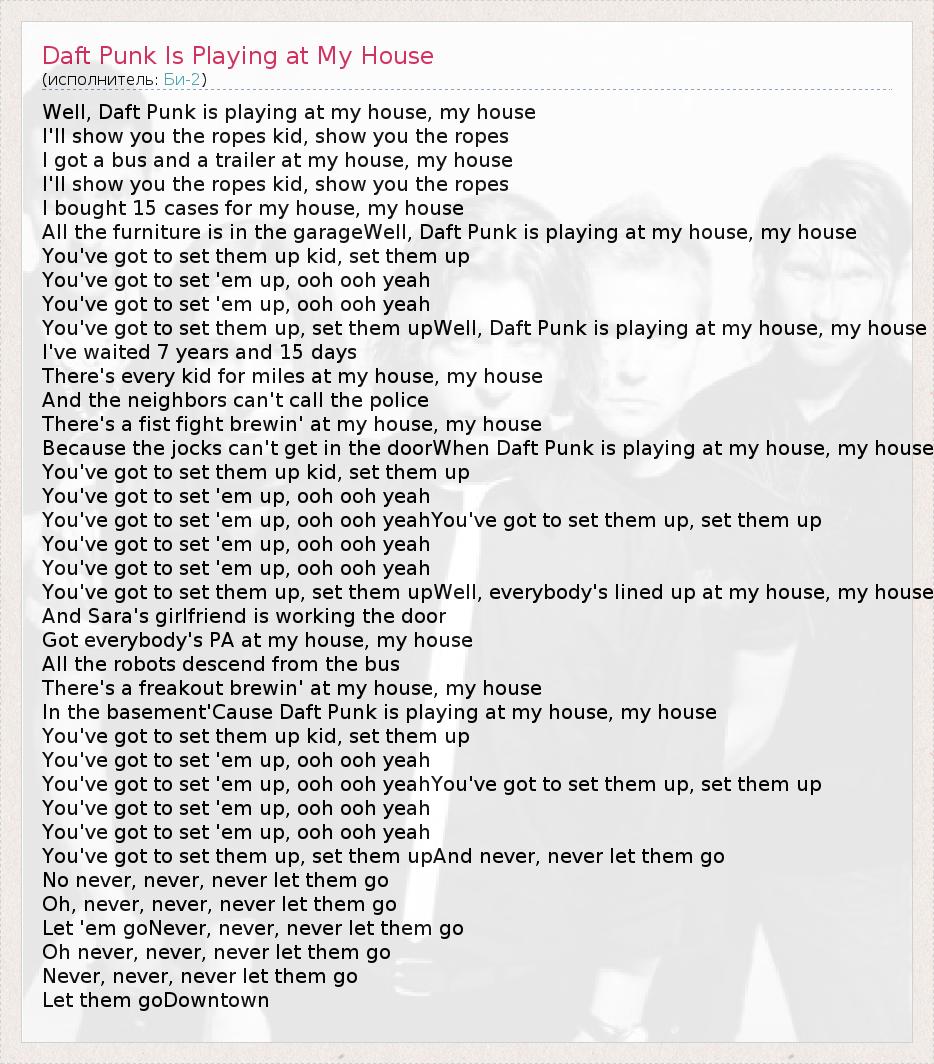 You've got to set them up, set them upWell, Daft Punk is playing at my house, my house