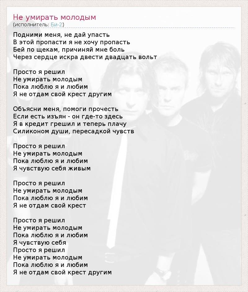 ГлавнаяИсполнителиБи-2Не умирать молодым