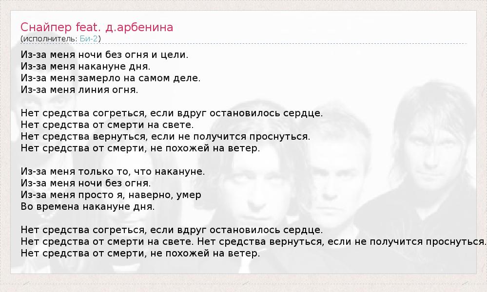 ГлавнаяИсполнителиБи-2Снайпер feat. д.арбенина