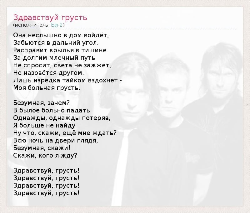 ГлавнаяИсполнителиБи-2Здравствуй грусть
