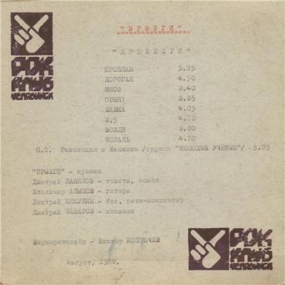 Челябинская рок группа. В начале "Чёрный брызги", затем "Брызги"Черные брызги", а впоследствии просто "Брызги", кардинальным образом отличались и от "Резинового Дедушки", и от "Тролля". Их первое аудиотворение - магнитоальбом "Дребезги" - очень высоко оценили многие челябинские музыканты и не совсем поняли обычные зрители. Просто такой... продолжение