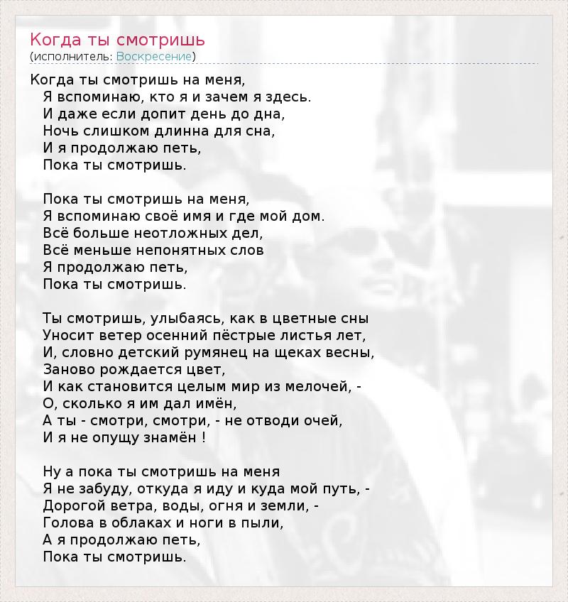 А как ты думаешь, о чем песня "Когда ты смотришь" ?