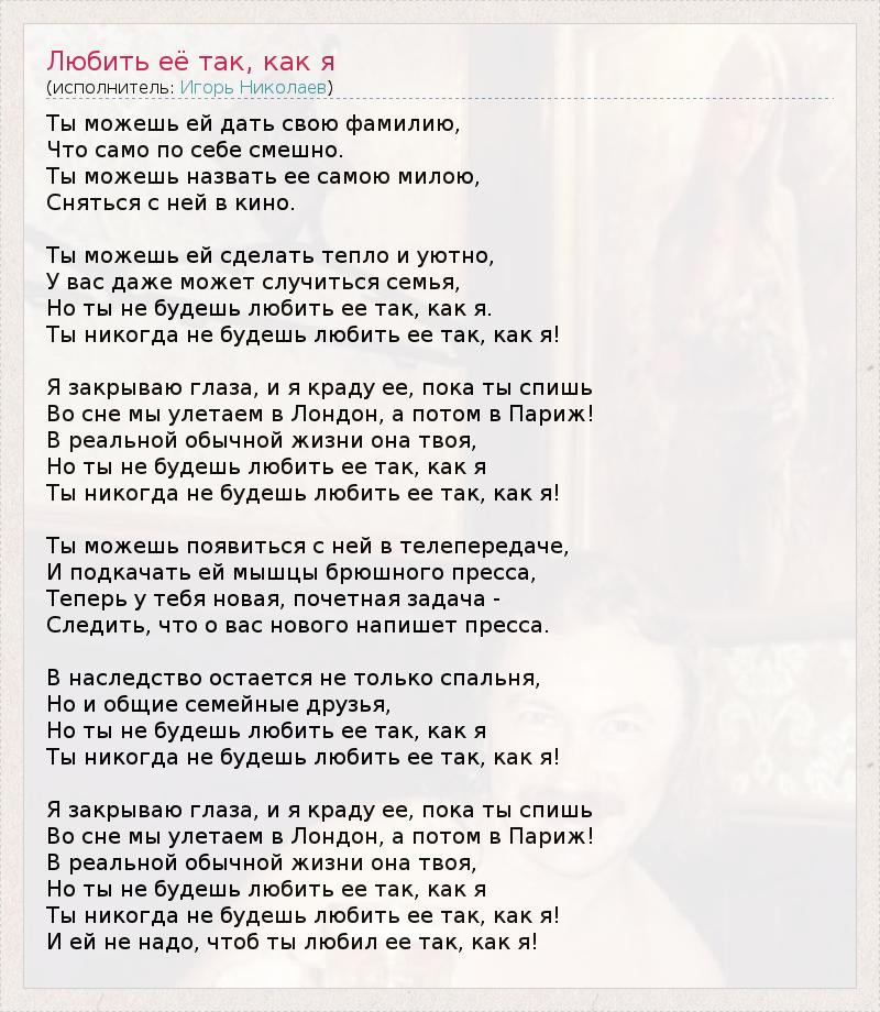 ГлавнаяИсполнителиИгорь НиколаевЛюбить её так, как я