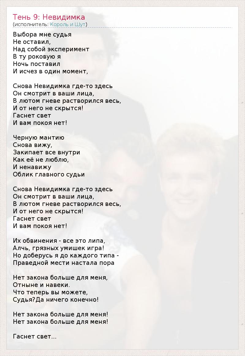 ГлавнаяИсполнителиКороль и ШутТень 9: Невидимка