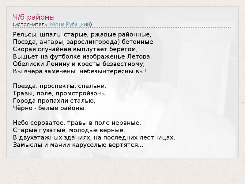 А как ты думаешь, о чем песня "Ч/б районы" ?