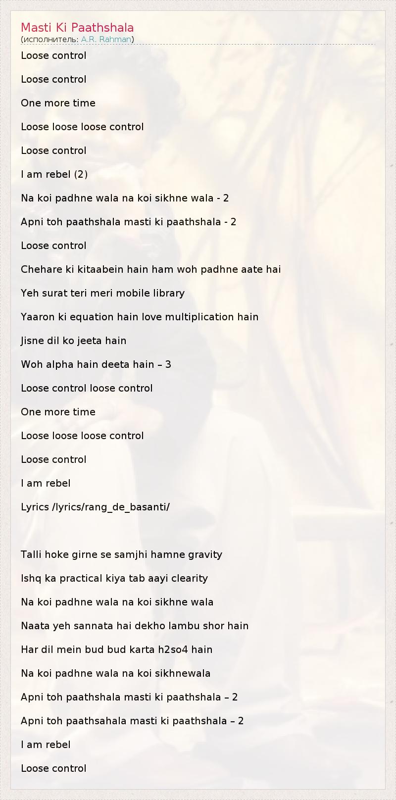 А как ты думаешь, о чем песня "Masti Ki Paathshala" ?