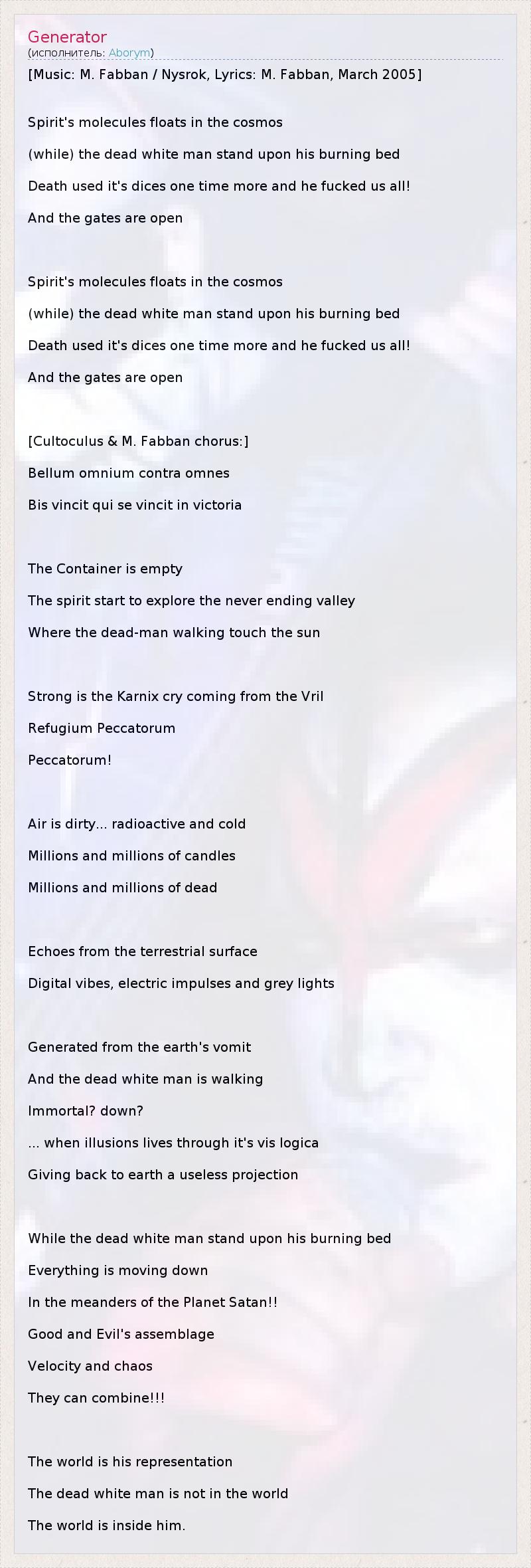 [Music: M. Fabban / Nysrok, Lyrics: M. Fabban, March 2005]