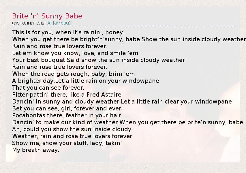 А как ты думаешь, о чем песня "Brite 'n' Sunny Babe" ?