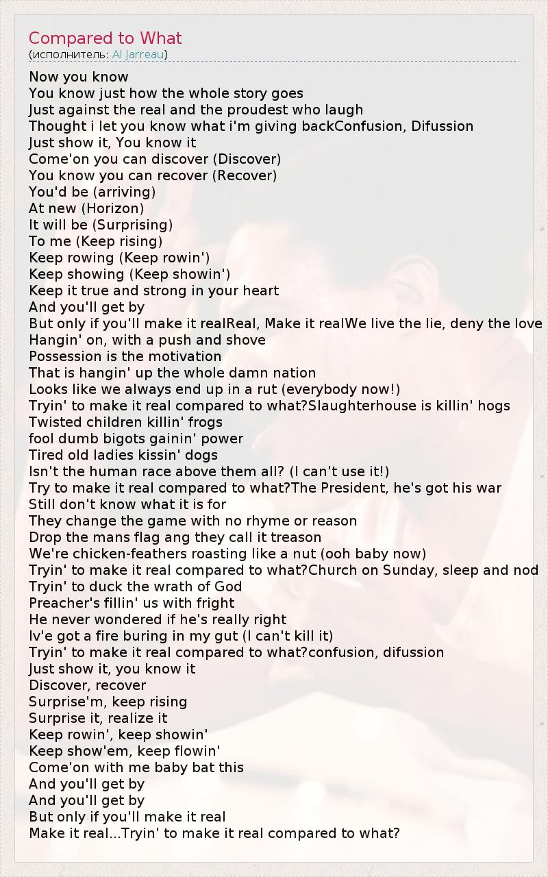 Tryin' to make it real compared to what?Church on Sunday, sleep and nod