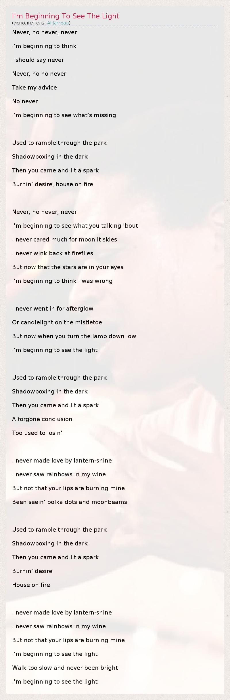 А как ты думаешь, о чем песня "I'm Beginning To See The Light" ?