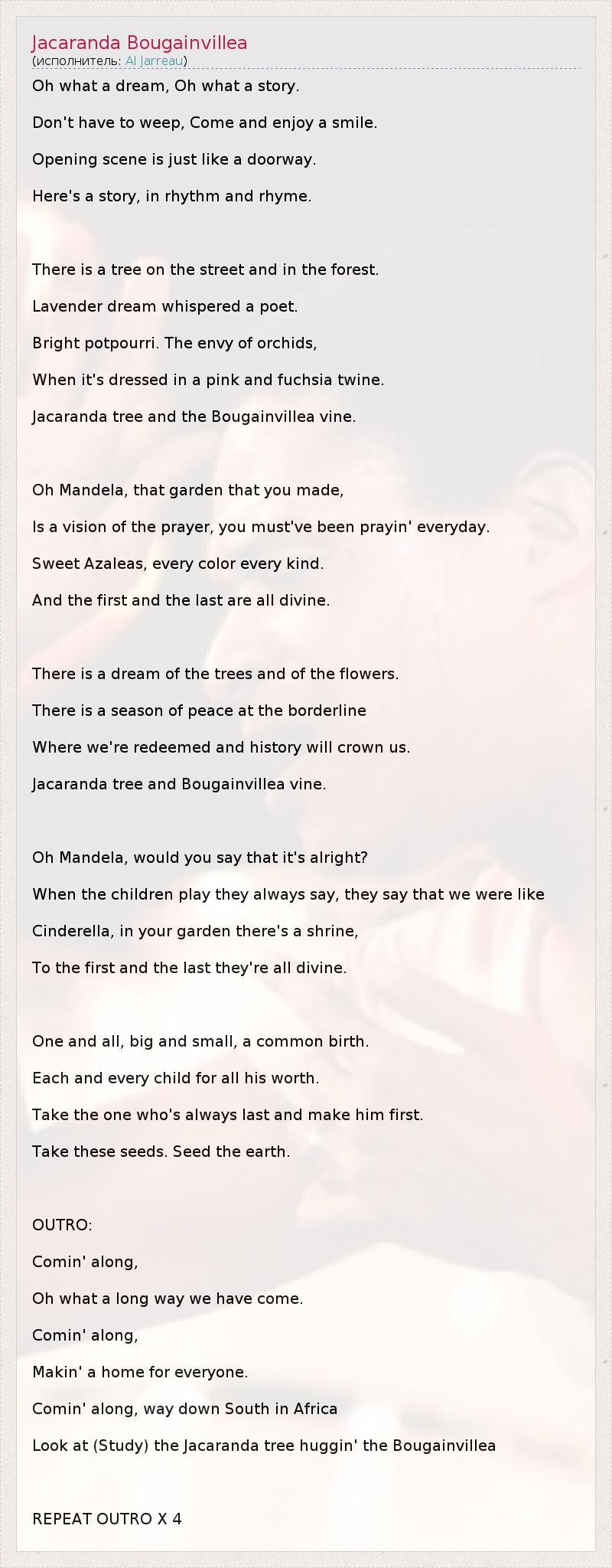ГлавнаяИсполнителиAl JarreauJacaranda Bougainvillea