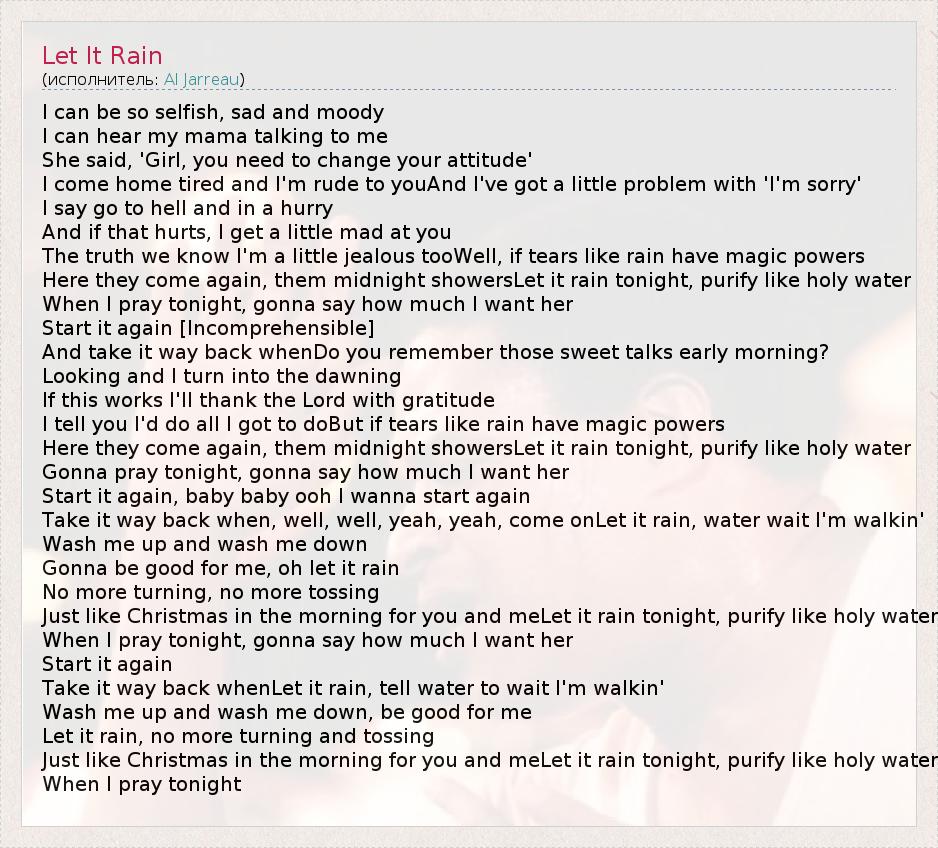 А как ты думаешь, о чем песня "Let It Rain" ?