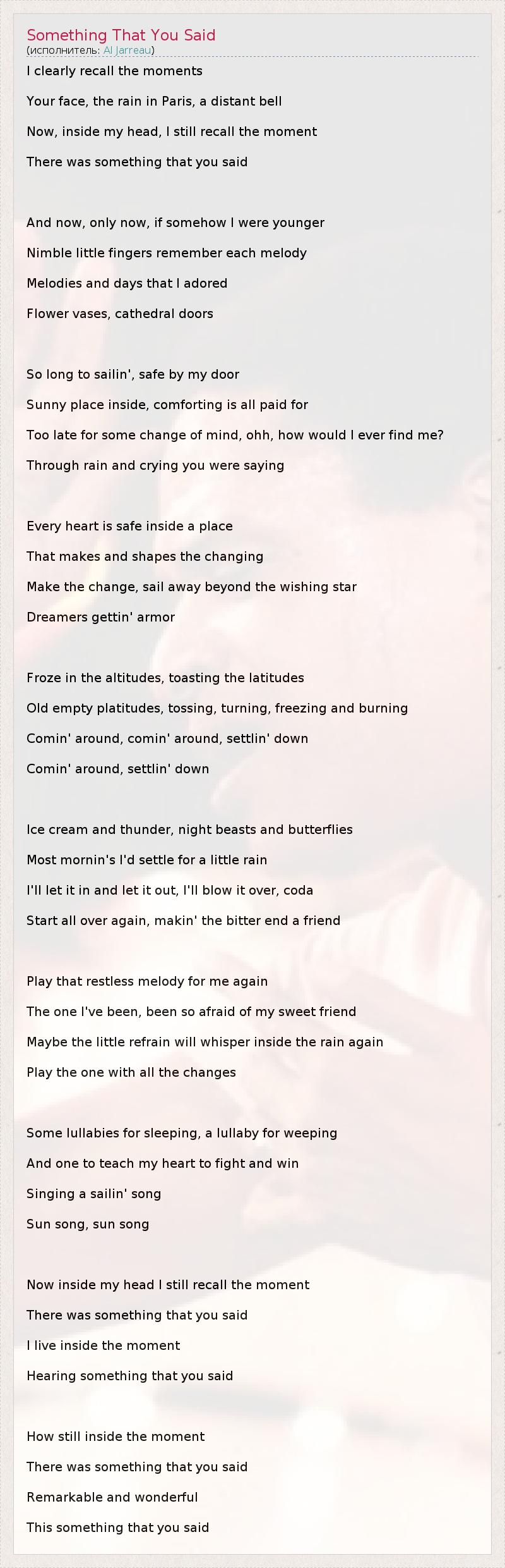А как ты думаешь, о чем песня "Something That You Said" ?
