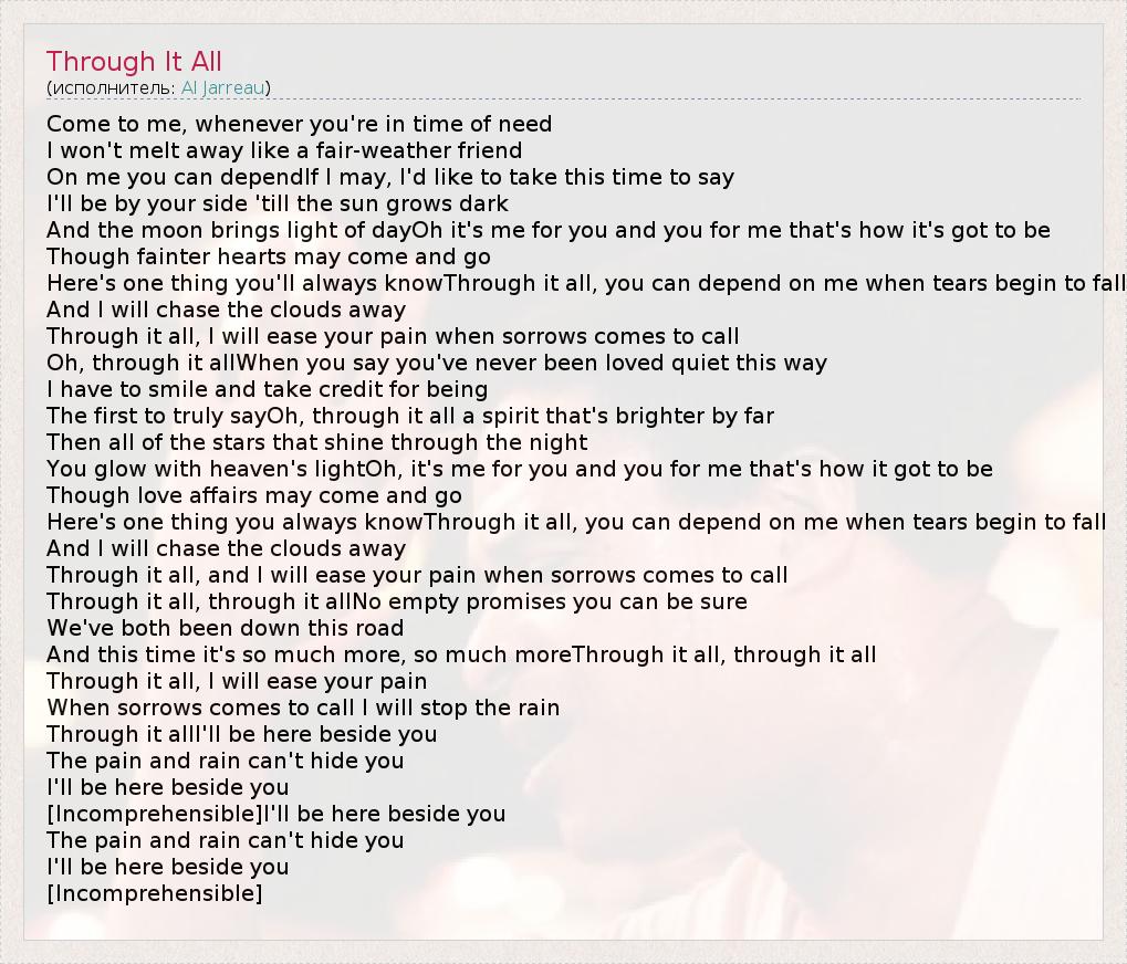 Here's one thing you always knowThrough it all, you can depend on me when tears begin to fall