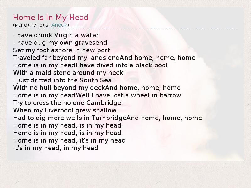 А как ты думаешь, о чем песня "Home Is In My Head" ?
