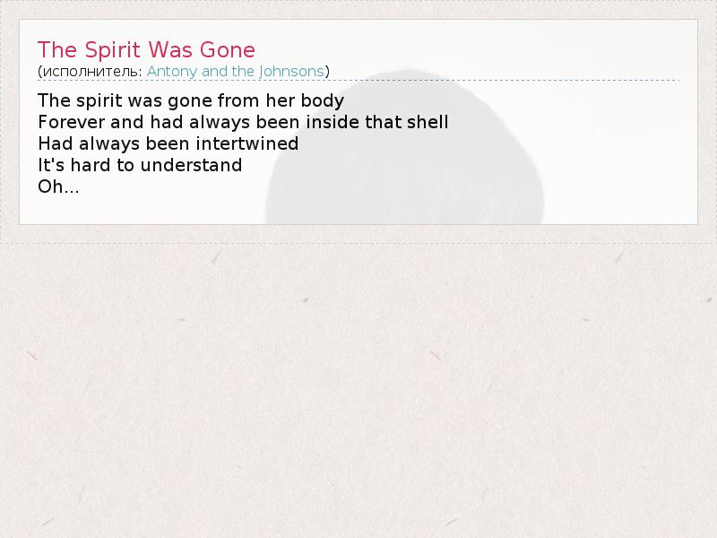 А как ты думаешь, о чем песня "The Spirit Was Gone" ?