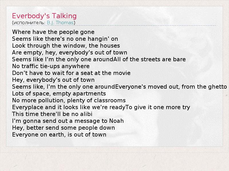 А как ты думаешь, о чем песня "Everbody's Talking" ?