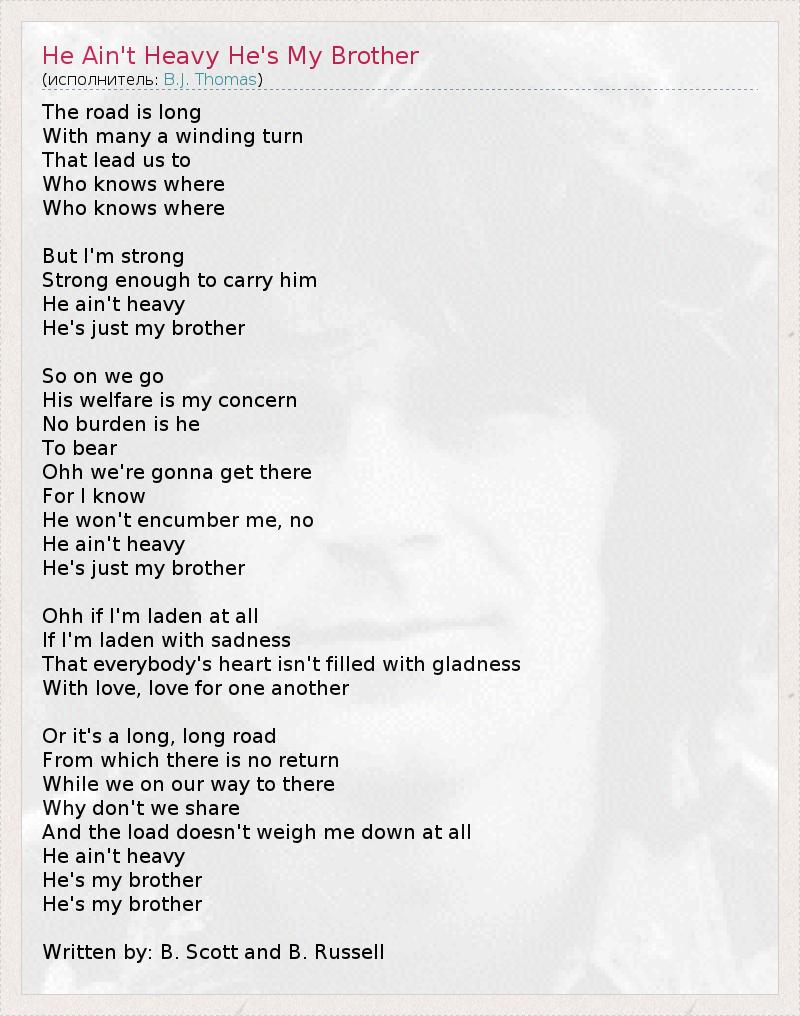 ГлавнаяИсполнителиB.J. ThomasHe Ain't Heavy He's My Brother