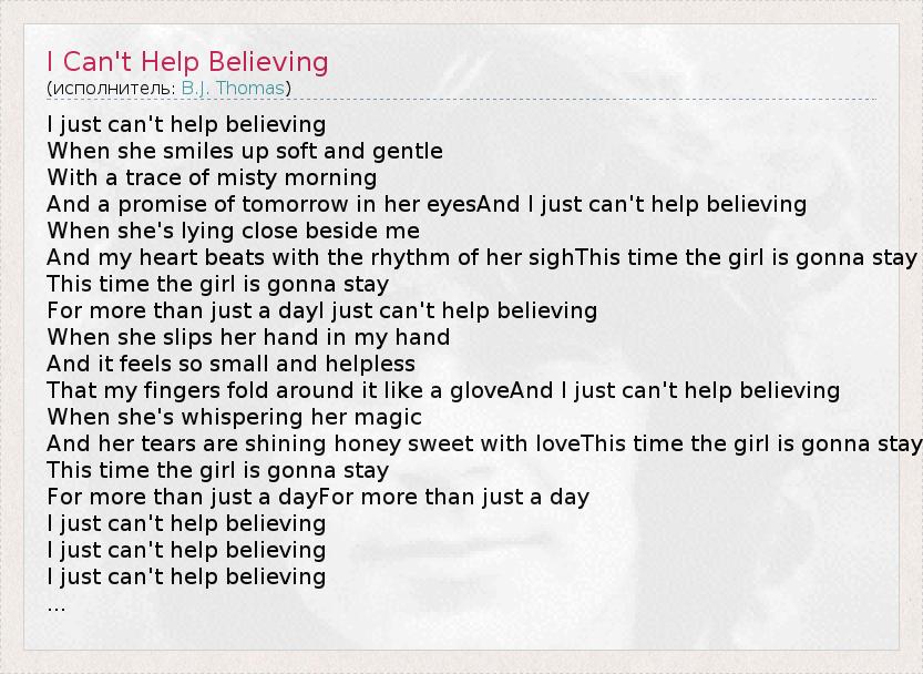 А как ты думаешь, о чем песня "I Can't Help Believing" ?