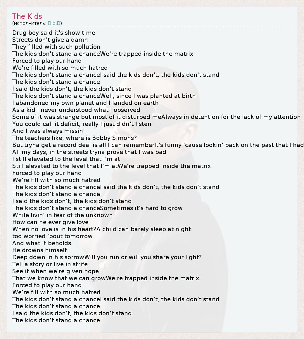 The kids don't stand a chanceI said the kids don't, the kids don't stand