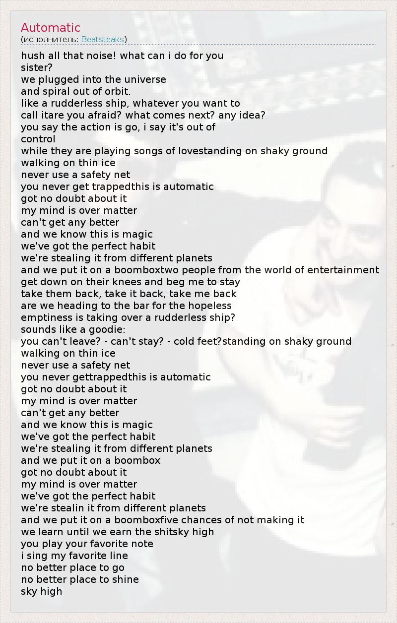 Это интересно:Beatsteaks — панк-рок-группа из Берлина, основанная в 1995 году. С их дебютным альбомом «Launched» в 1999 году, они стали первой немецкой группой на лейбле Epitaph Records. На MTV Europe Music Awards в 2004 году они получили награду, как лучшая немецкая группа. Дебют Beatsteaks для американской публики состоялся в телепередаче MTV Viva La Bam и появились на сборнике Viva La Bands с песней «I Don’t Care as Long as You Sing». А также их песни... продолжение