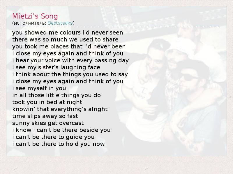 А как ты думаешь, о чем песня "Mietzi's Song" ?