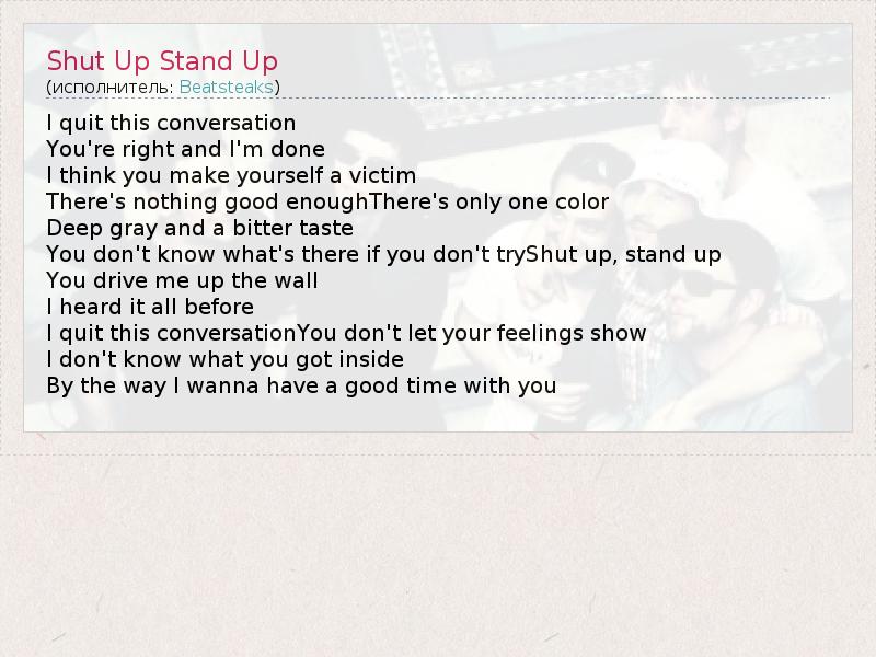 А как ты думаешь, о чем песня "Shut Up Stand Up" ?