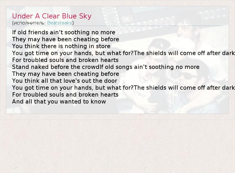 А как ты думаешь, о чем песня "Under A Clear Blue Sky" ?