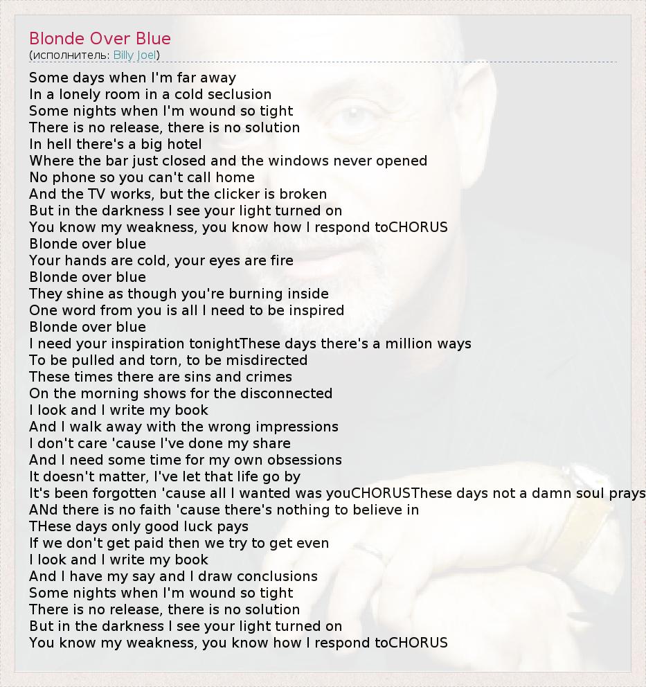 А как ты думаешь, о чем песня "Blonde Over Blue" ?