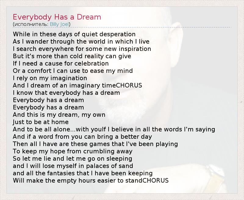 А как ты думаешь, о чем песня "Everybody Has a Dream" ?