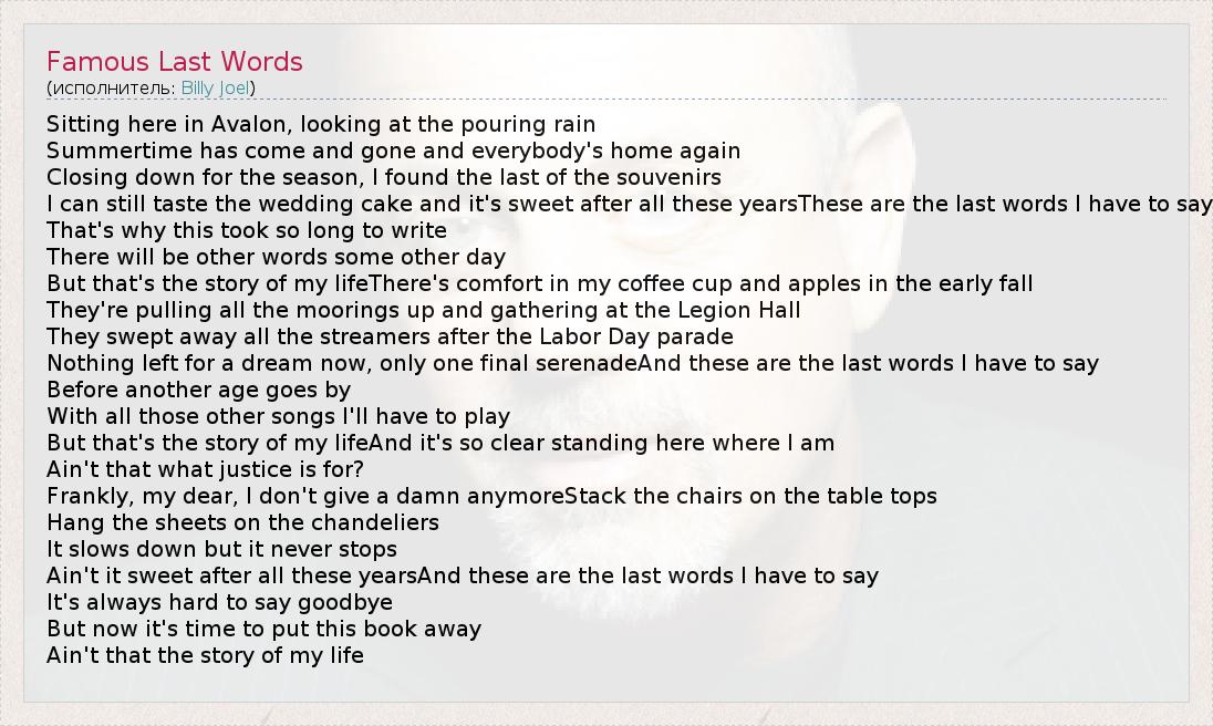 А как ты думаешь, о чем песня "Famous Last Words" ?
