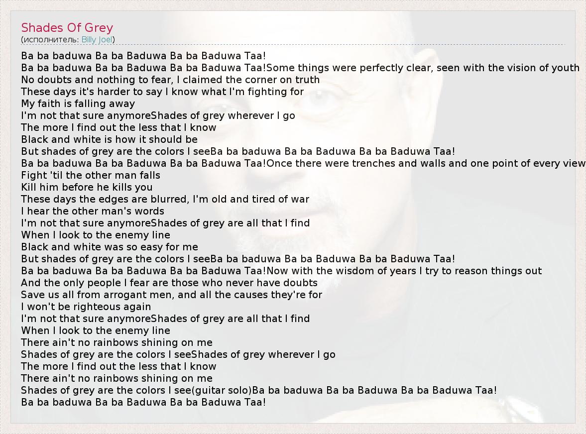 А как ты думаешь, о чем песня "Shades Of Grey" ?