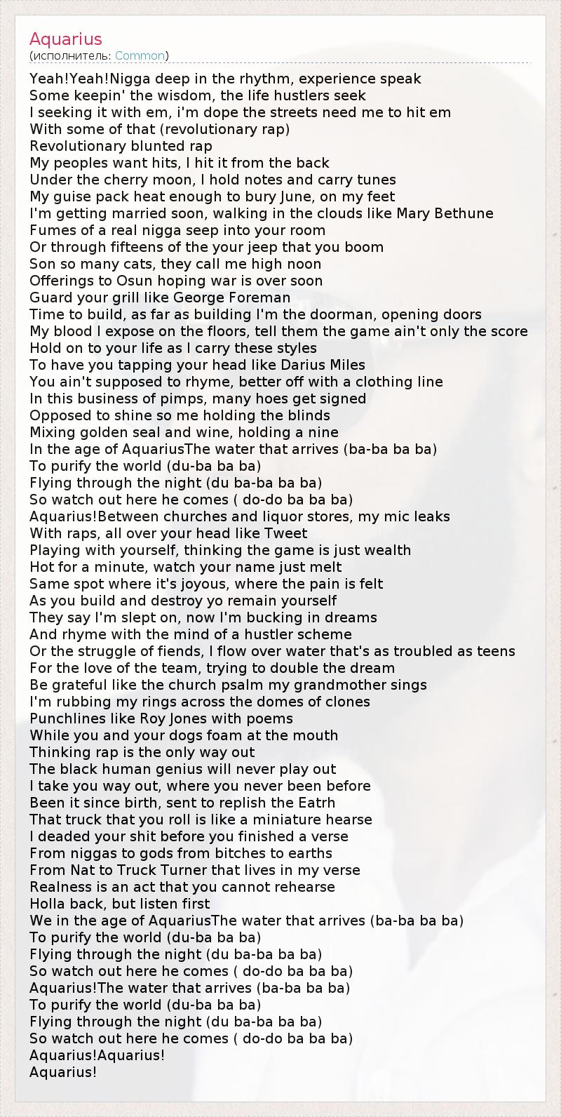 We in the age of AquariusThe water that arrives (ba-ba ba ba)