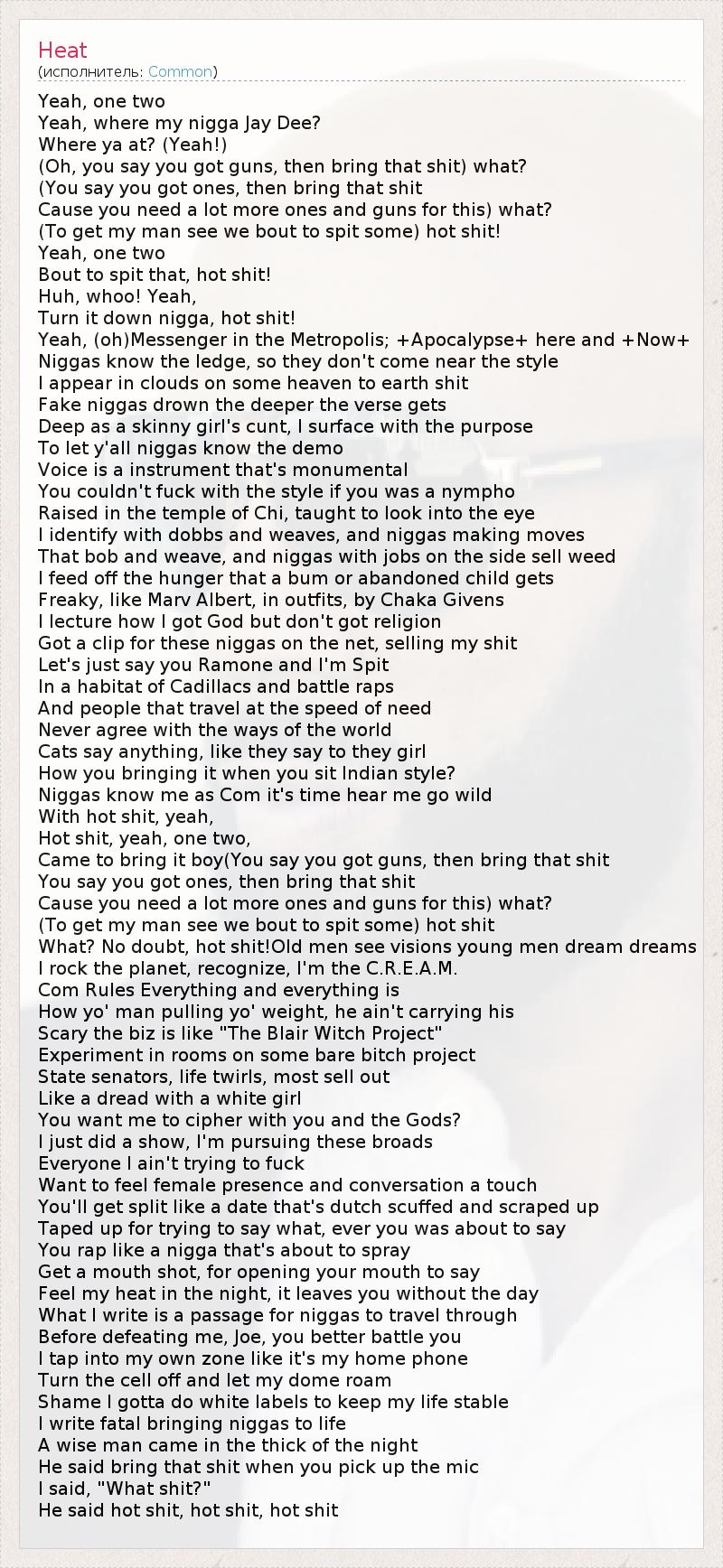 Это интересно:Common – это строгость и мягкость, красота и сила. Common – это стиль. Common -это сладкая вата и мягкий плед, оберег от невзгод и жаркое, всеобъемлющее солнце, греющее хип-хаперов по всей земле. Common – это лирика и теплый звук. Common – это корни хип-хопа в их современной заботливой интерпретации. В его музыку очень легко влюбиться, и влюбиться бесповоротно. Не сладкий, не перченый. Не слишком назидательный,... продолжение