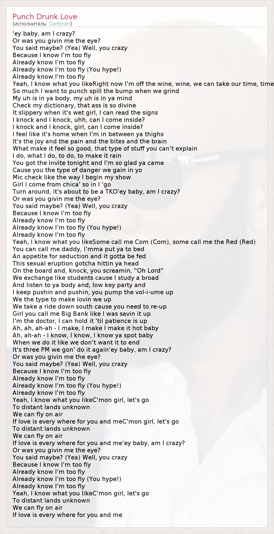 А как ты думаешь, о чем песня "Punch Drunk Love" ?
