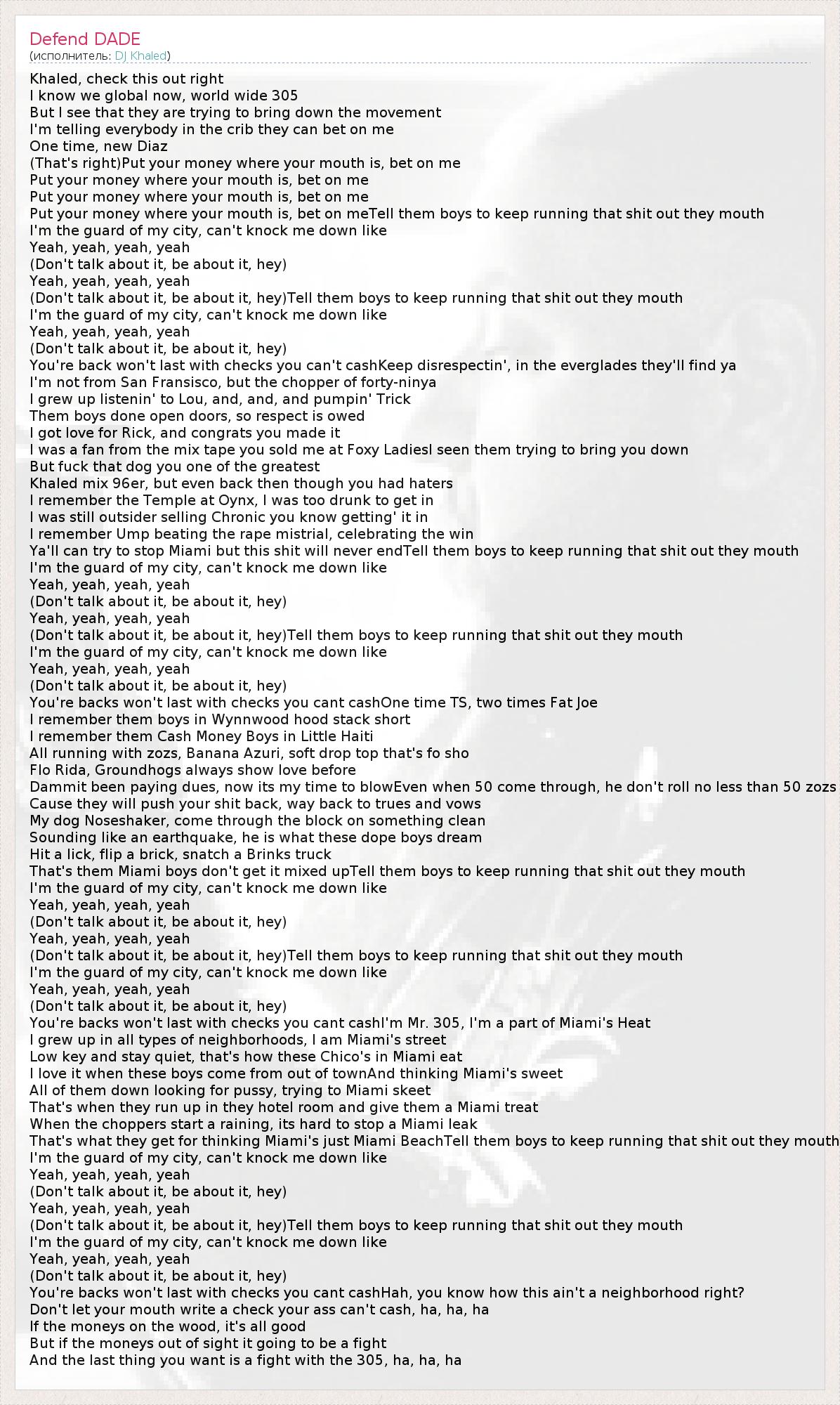 А как ты думаешь, о чем песня "Defend DADE" ?