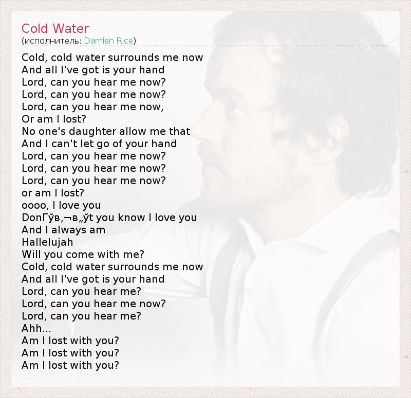 Это интересно:Damien Rice певец-композитор из места Kildare, Ирландия. В марте 1999 года Damien двинулся в Тоскану, а затем путешествовал по Европе, зарабатывая деньги уличными выступлениями. Он вернулся в Дублин через год с ясной головой, полной новых идей. Свои идеи Damien воплотил в нескольких композициях, которые записал у себя дома. Мать сказала ему, что у него в Лондоне есть двоюродный брат David Arnold - продюсер, который... продолжение