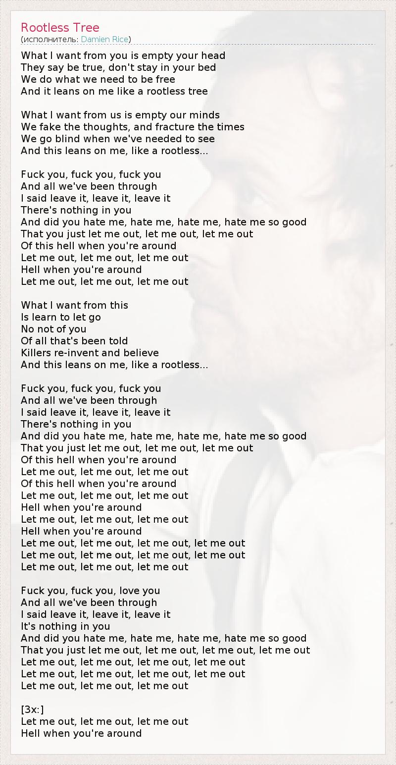 А как ты думаешь, о чем песня "Rootless Tree" ?