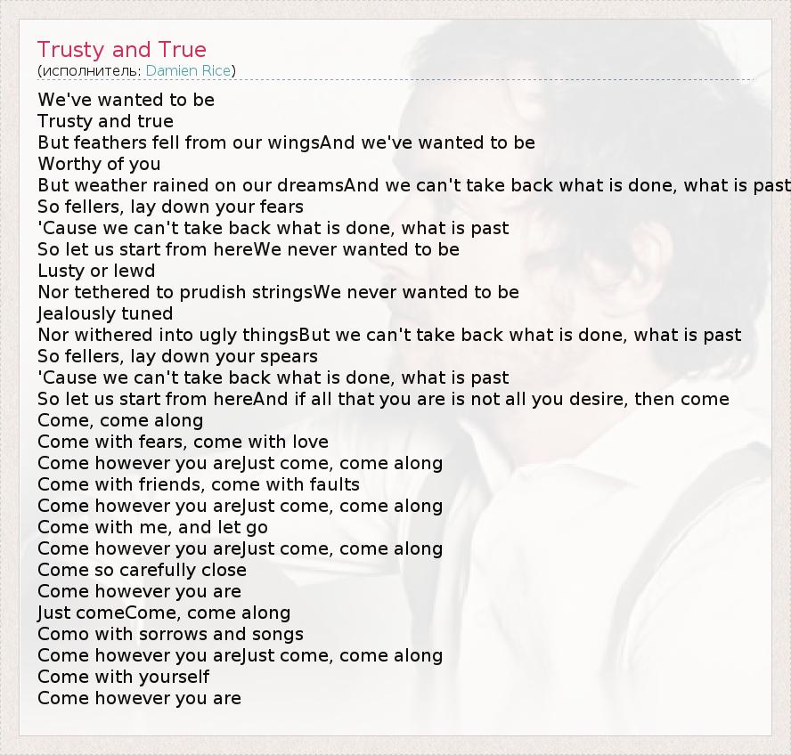 А как ты думаешь, о чем песня "Trusty and True" ?