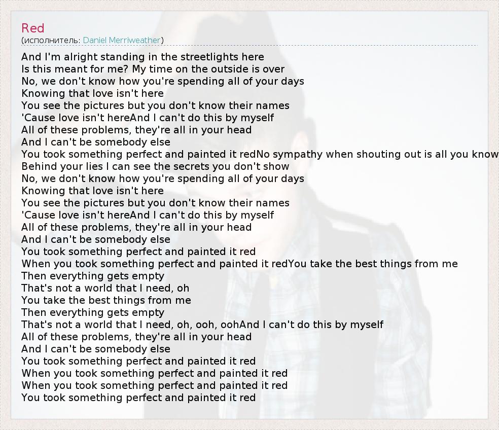You took something perfect and painted it redNo sympathy when shouting out is all you know