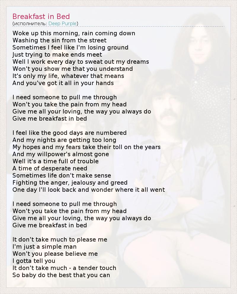 А как ты думаешь, о чем песня "Breakfast in Bed" ?