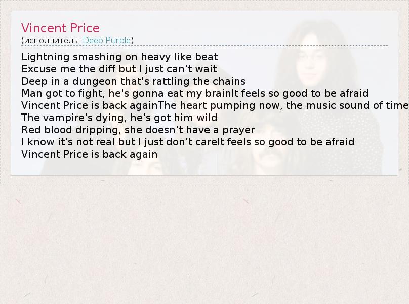 А как ты думаешь, о чем песня "Vincent Price" ?