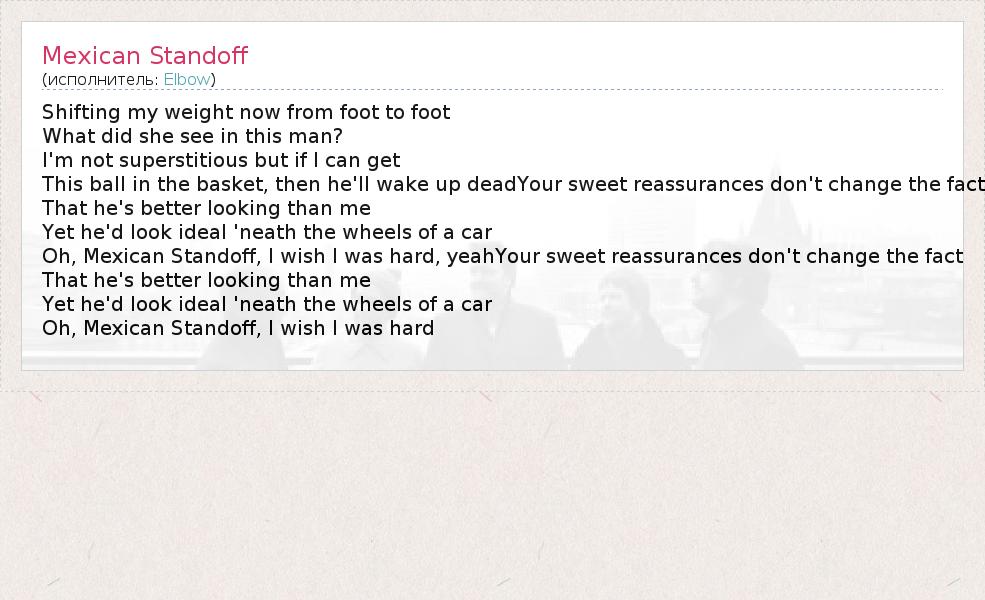 А как ты думаешь, о чем песня "Mexican Standoff" ?