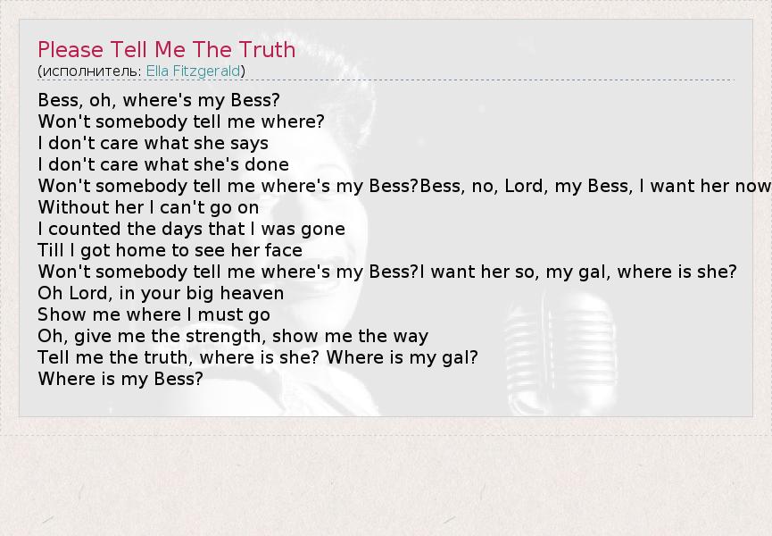 А как ты думаешь, о чем песня "Please Tell Me The Truth" ?