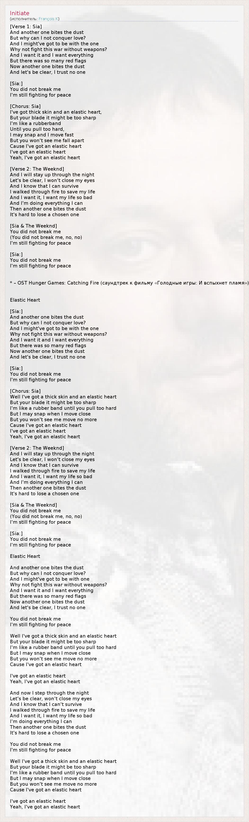 * – OST Hunger Games: Catching Fire (саундтрек к фильму «Голодные игры: И вспыхнет пламя»)
