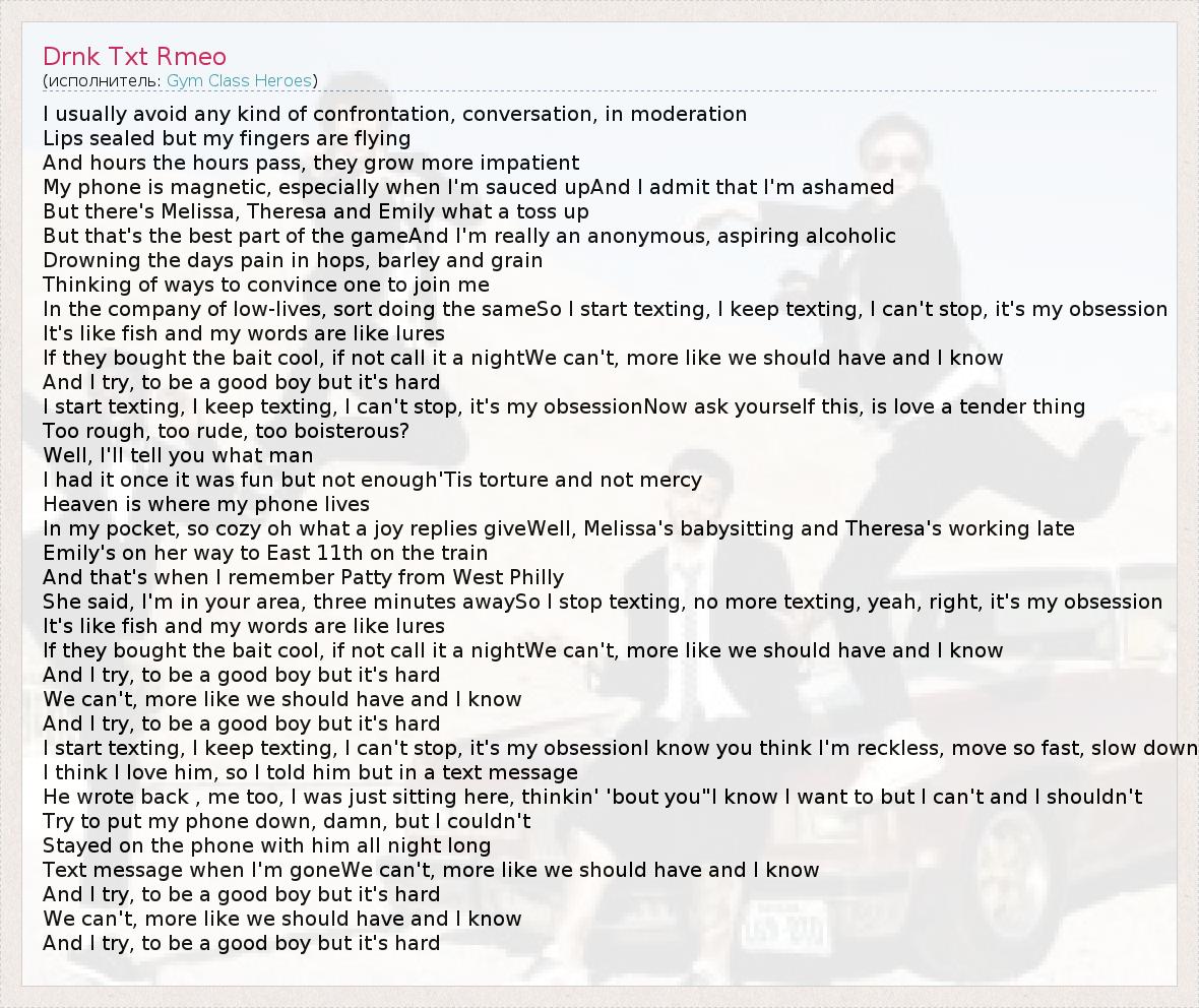 А как ты думаешь, о чем песня "Drnk Txt Rmeo" ?