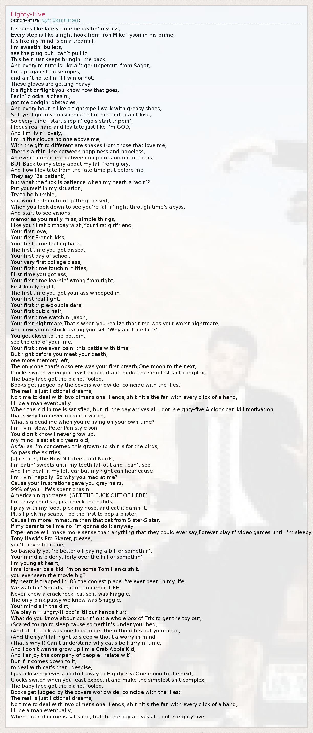 А как ты думаешь, о чем песня "Eighty-Five" ?