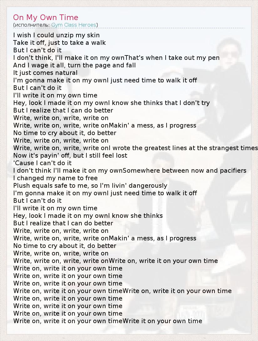 А как ты думаешь, о чем песня "On My Own Time" ?
