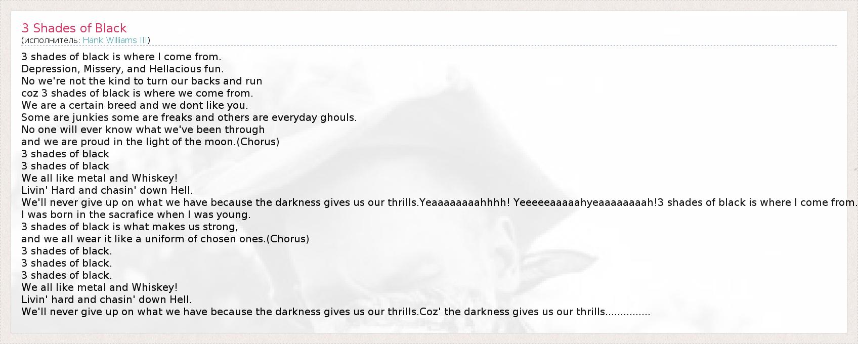 We'll never give up on what we have because the darkness gives us our thrills.Yeaaaaaaaahhhh! Yeeeeeaaaaahyeaaaaaaaah!3 shades of black is where I come from.