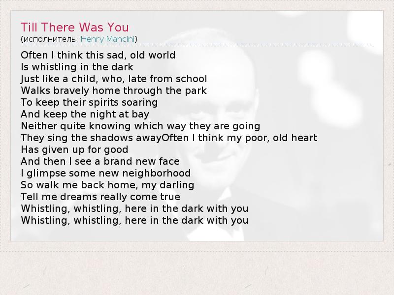 А как ты думаешь, о чем песня "Till There Was You" ?